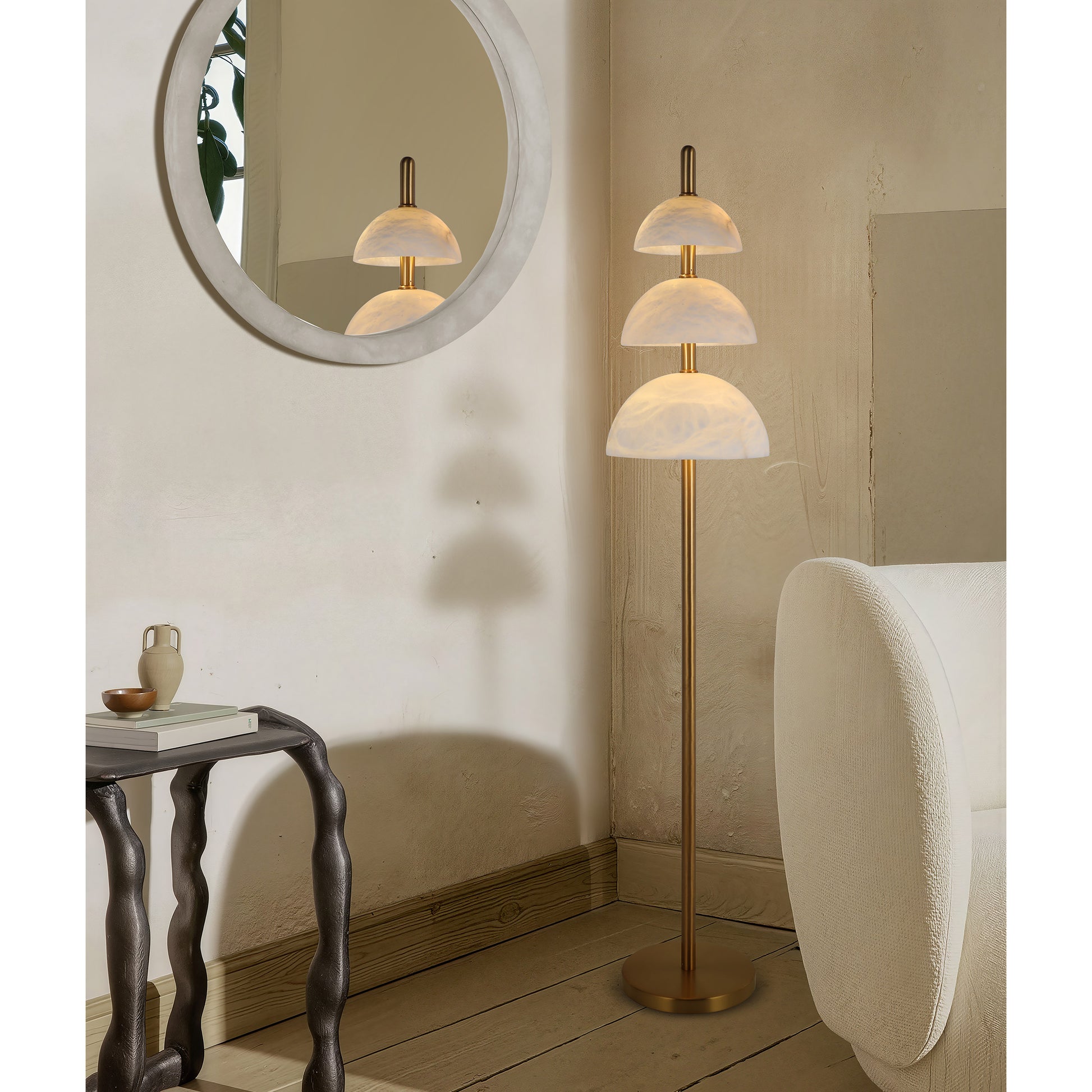 ارتقِ بأي مساحة مع مصباح الأرضية الرائع FL5040 ، وهو مصباح فطر من الألباستر ذو ثلاثة طبقات يحول الإلهام العضوي إلى بيان بارز للتصميم الحديث. يبلغ ارتفاع هذا المصباح 1900 مم، ويتميز بترتيب متسلسل لثلاثة ظلال صلبة من الألباستر، مصممة بدقة لتقليد الجمال الهادئ لمجموعة من الفطر. يخلق كل ظل، بأبعاده الفريدة، إيقاعًا بصريًا ديناميكيًا وينبعث منه توهج ناعم عميق ومتعدد الطبقات. كموفر رائد من نوع B2B، تقدم Brilliant-Maker هذه القطعة كدليل على قدرتنا على دمج الرؤية الفنية مع حلول الإضاءة القابلة للتخصيص واسعة النطاق لأكثر المشاريع تميزاً.بعد جديد في الإضاءة المحيطة تتجاوز مصابيح FL5040 مجرد الإضاءة لتصبح نقطة محورية في الغرفة. تعمل الظلال المتدرجة - D230، و D290، و D350 مم - معًا لتصنع إضاءة محيطية واسعة وخالية تمامًا من الوهج. مع تسع لمبات LED من نوع G9، توفر المصباح إضاءة دافئة وفيرة تمر بلطف عبر الألباستر الطبيعي، مما يخلق أجواءً هادئة من الدفء والرقي الذي لا مثيل له. يضمن الهيكل المصنوع من الفولاذ المتين مع طلاء ABRS (S014) العصري الثبات، مما يجعله إضافة رائعة ومتينة إلى التصميمات الداخلية الفاخرة.المواصفات الرئيسية للمنتج: