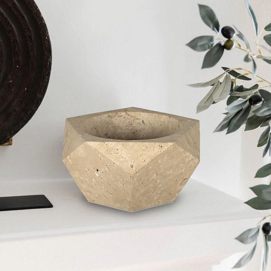 Cubist Party Dodecahedron Yellow Travertine Decoration - Modern Minimalism with Geometric Perfection | BRILLIANT-MAKER