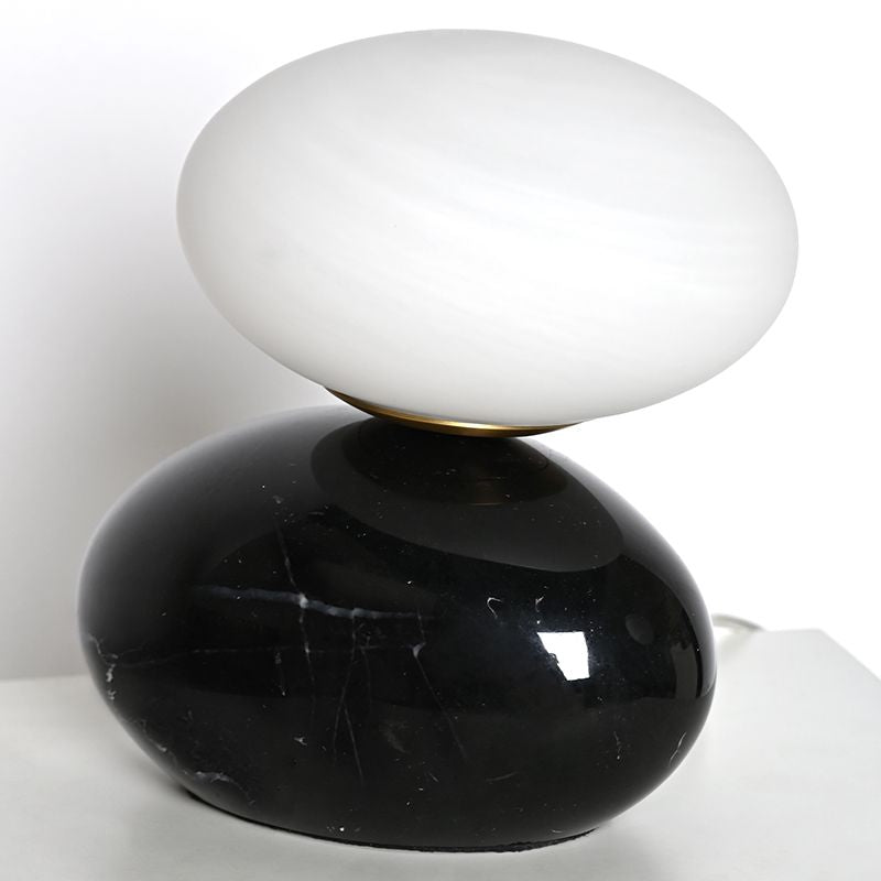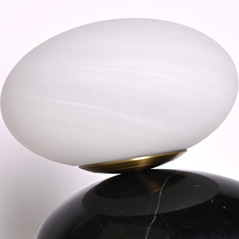 BRTL3327MA Black Marble Cobble Base Opal Glass Bedside Dimmable Mini Night Light | Zen/Simple Style | BRILLIANT-MAKER