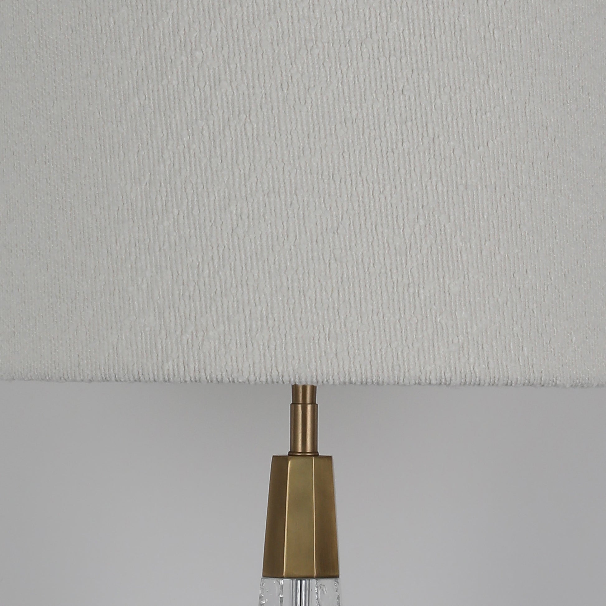 Accented by a soft BE14 fabric shade and antique brass brushed steel elements, the conical form adds dynamic ascent and modern sophistication to the series. Brilliant refractions harmonize with tender diffusion, creating a serene yet invigorating atmosphere.