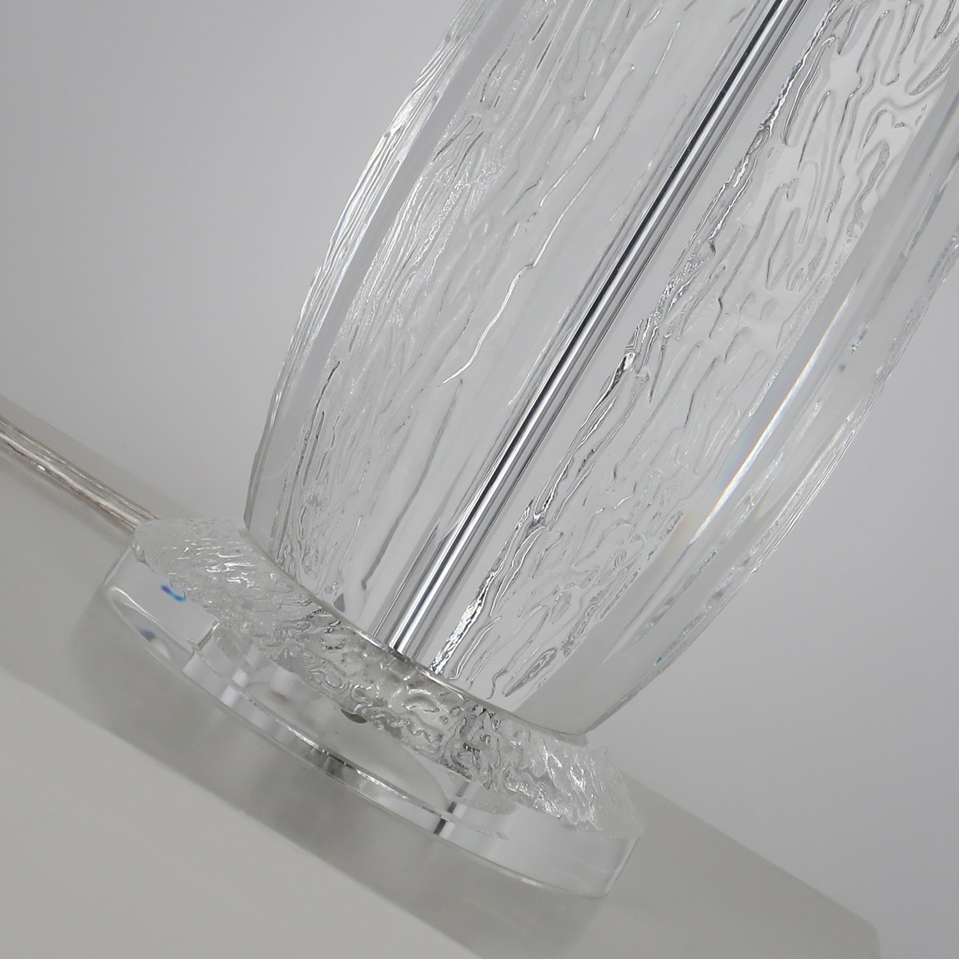 Through masterful irregular carving on high-clarity K9 crystal glass, we replicate the natural quiver of water in mid-fall. Paired with a refined BE14 fabric shade and sleek nickel finish steel accents, the design balances organic sensuality with modern precision. Sharp refractions dissolve into gentle diffusion, creating an atmosphere of serene anticipation and timeless elegance.