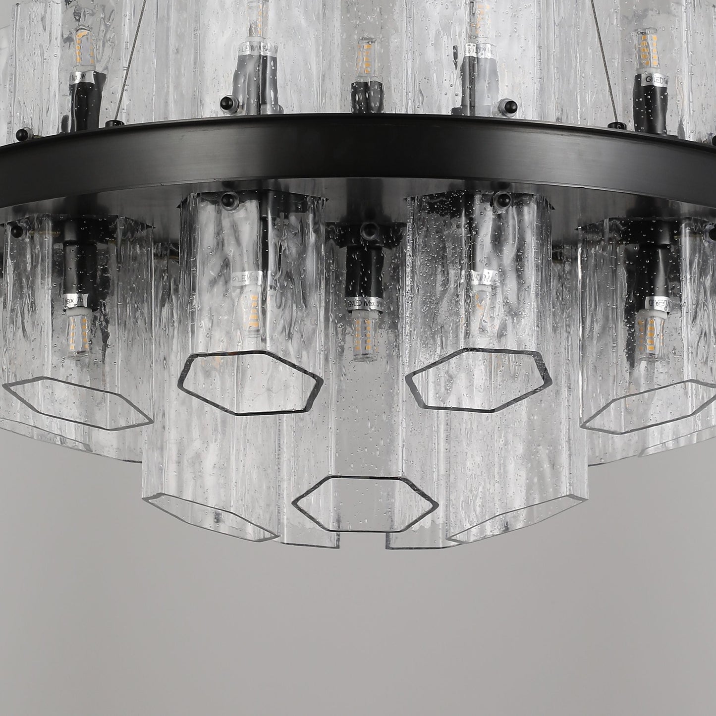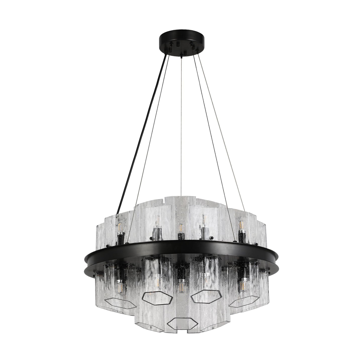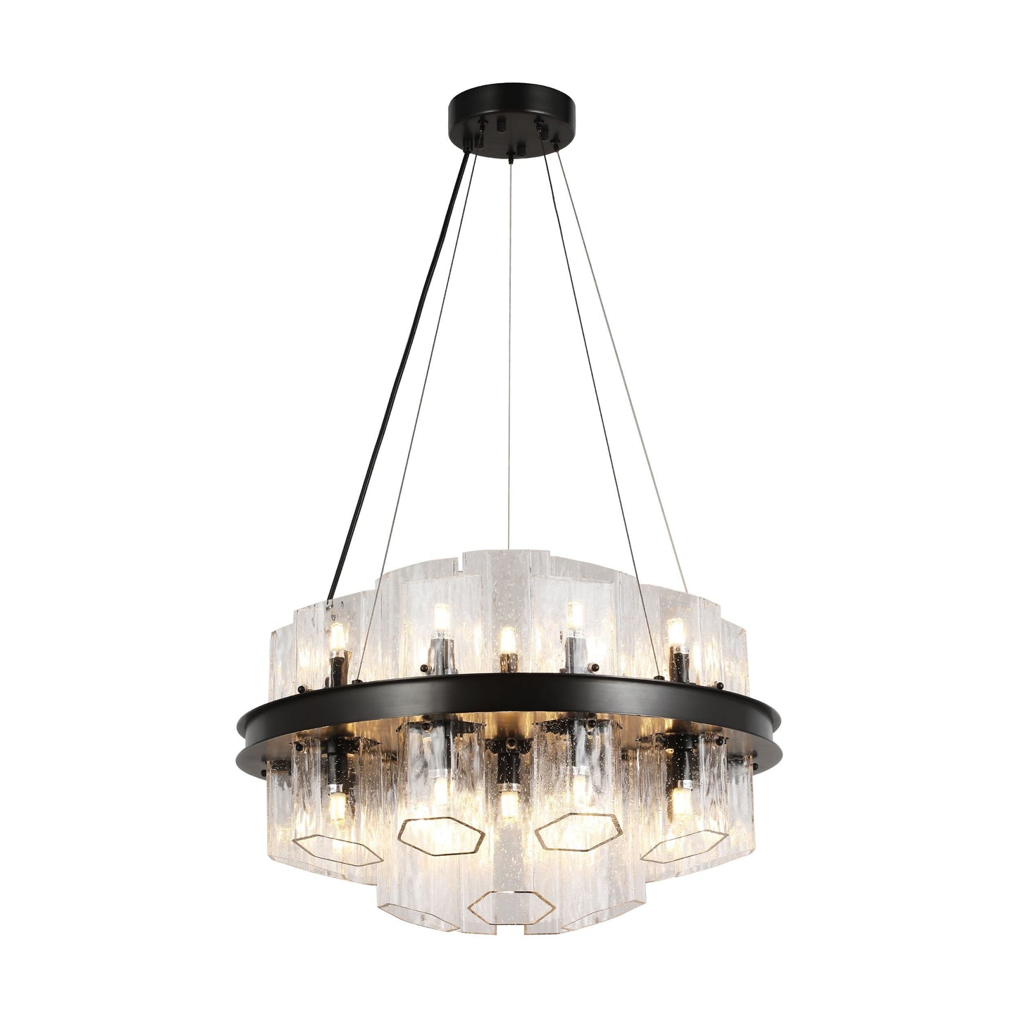 Hexagonal Textured Glass Chandelier – Modern Architectural Lighting for Luxury Spaces | BRCH9191-BZ