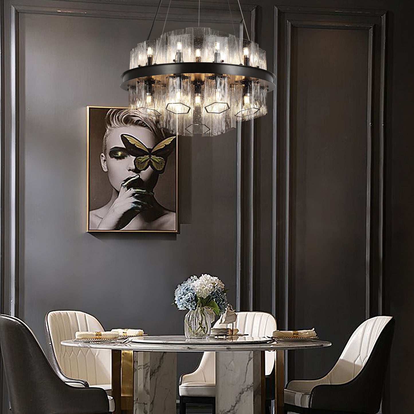 - Textured Glass Innovation: Inspired by natural water flow dynamics, the glass panels feature hand-sculpted ripples and frosted gradients, creating a 360° interplay of light and shadow.