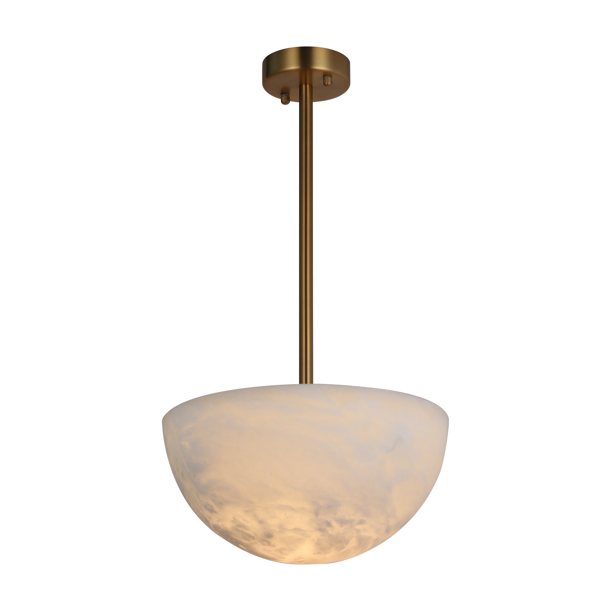 Robust Construction: Combines a solid alabaster shade with a sleek steel suspension system in a contemporary ABRS (S014) finish, ensuring durability and a cohesive aesthetic.