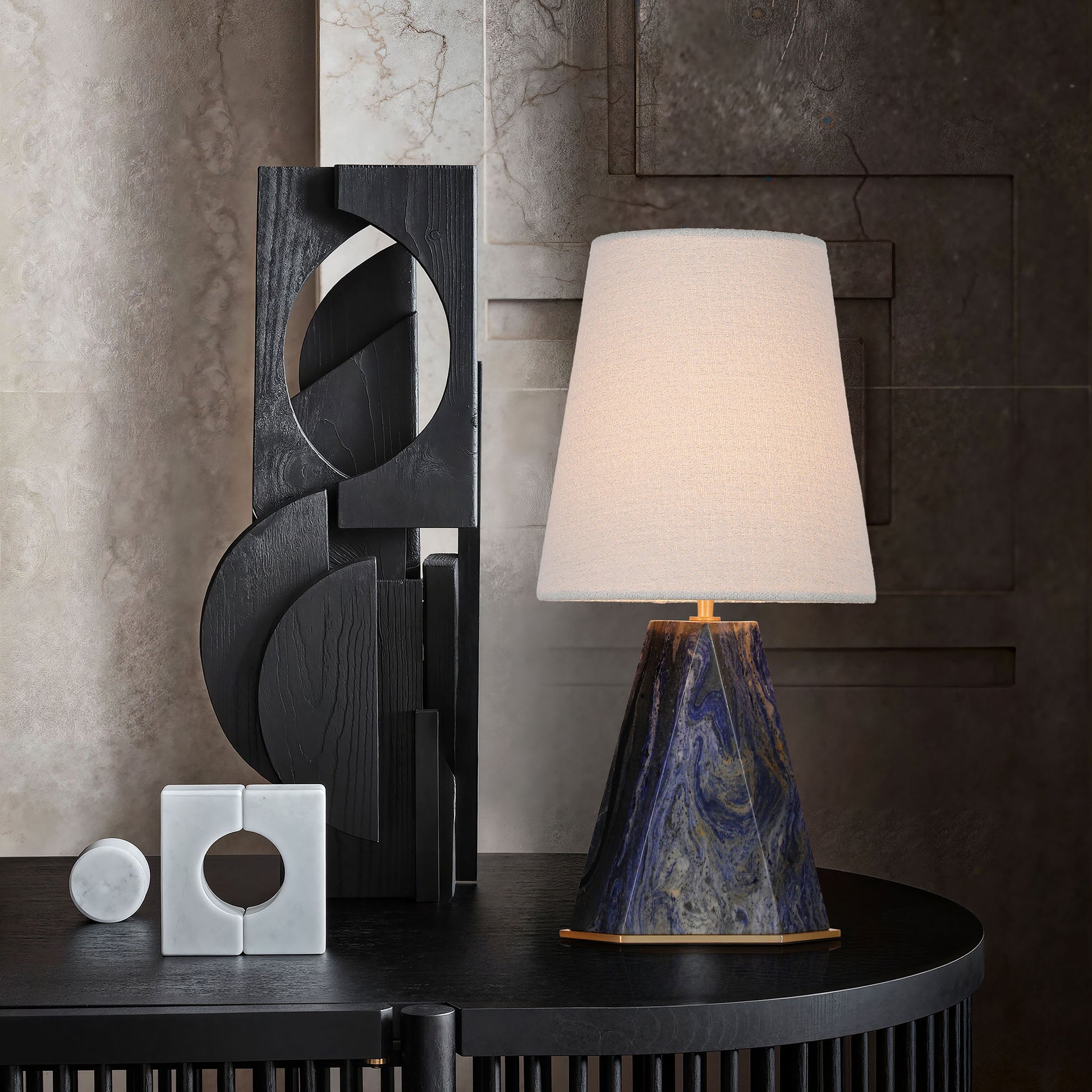 The conical geometry introduces dynamic energy and tension, contrasting yet complementing the series' hexagonal and circular counterparts—evoking progression and ascent. The cloisonné marble, born of intense heat and natural patience, holds a frozen instant of radiance within cool stone. Under the lamp's soft glow, its veins dance and flow, etching the poetic narrative of time through shifting light.