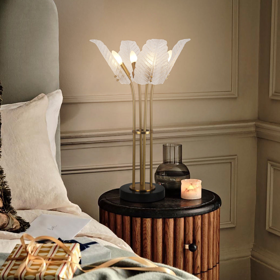 The Windborne Leaves Textured Glass Table Lamp draws inspiration from the natural beauty of autumn leaves scattered on bare branches. The layered glass design, combined with warm lighting, creates a serene and elegant atmosphere, reflecting the perfect balance between simplicity and luxury.