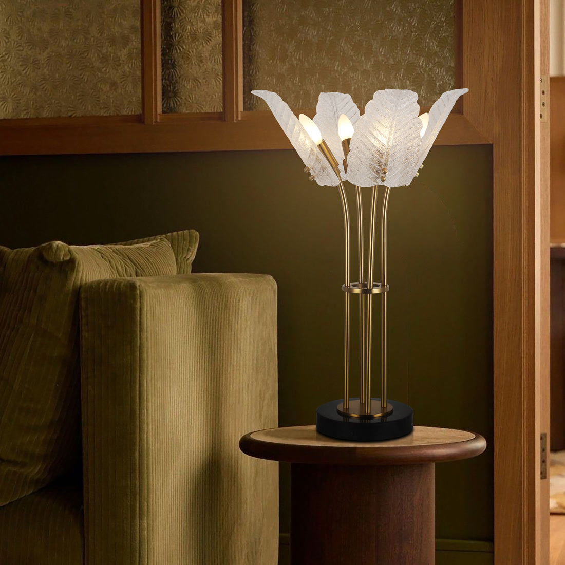 Windborne Leaves Textured Glass Table Lamp | Contemporary Simplicity | Mid Century Table lamps