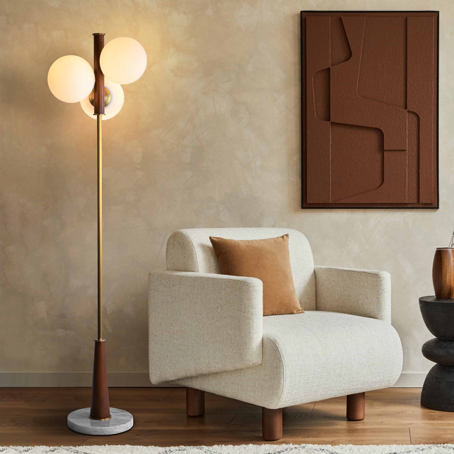 BRFL5029AB 3 头乳白色玻璃 Adair 橡木落地灯 | 复古风格 | 定制落地灯